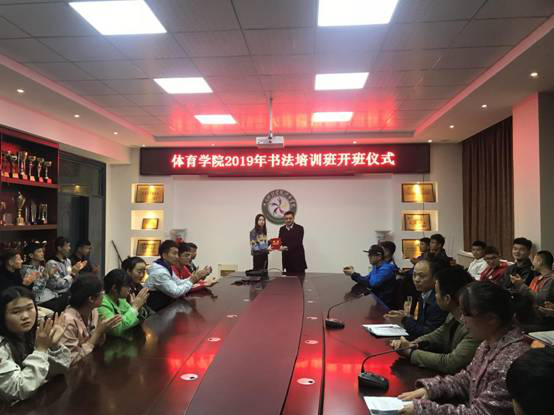 为了更好的传承中华优秀传统文化,进一步践行我院“四化育人”工作体系,提升师范生学习训练专业化,3月21日上午,我院在8号楼108会议室召开“弘扬传统文化,塑造时代新人”书法培训班开班仪式,院党委副书记李志峰、副院长高泳、团委书记郭全法、辅导员陈芳芳及2018级体育教育专业55名学生参加了此次开班仪式。