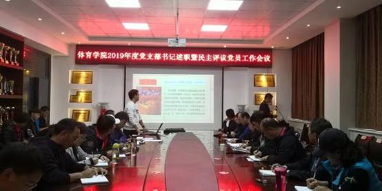 10月24日下午,体育学院党委在体育学院会议室召开了2019年度党支部书记工作述职评议会议。正处级党建组织员叶孟韬同志及学院党委委员、支部书记、委员、全体党员教工共计三十余人参会。