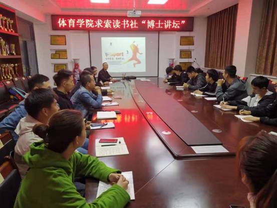 10月28日晚上,在8号教学楼8108会议室体育学院求索读书社举办“博士讲坛”。体育学院副教授、硕士生导师、河南省教育厅学术技术带头人贾洪洲博士作了《“生命在于运动”的进化论解读》的主题报告。研究生秘书李景龙、教学秘书李佳翼等老师出席讲坛。体育学院求索读书社全体同学及其研究生30余名同学参加讲坛。讲坛由求索读书社刘培钢主持。