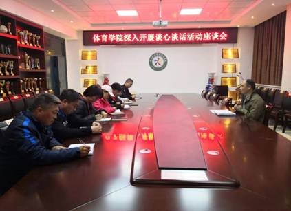 11月7—12日,体育学院党委中心组、院领导与分管部门分别在会议室召开深入开展谈心谈话活动座谈会。