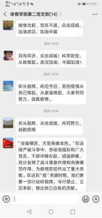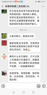 2月27日下午,中共河南科技学院体育学院第二党支部通过微信开展“学习《习近平在统筹推进新冠肺炎疫情防控和经济社会发展工作部署会议上的讲话》”主题党日活动。
