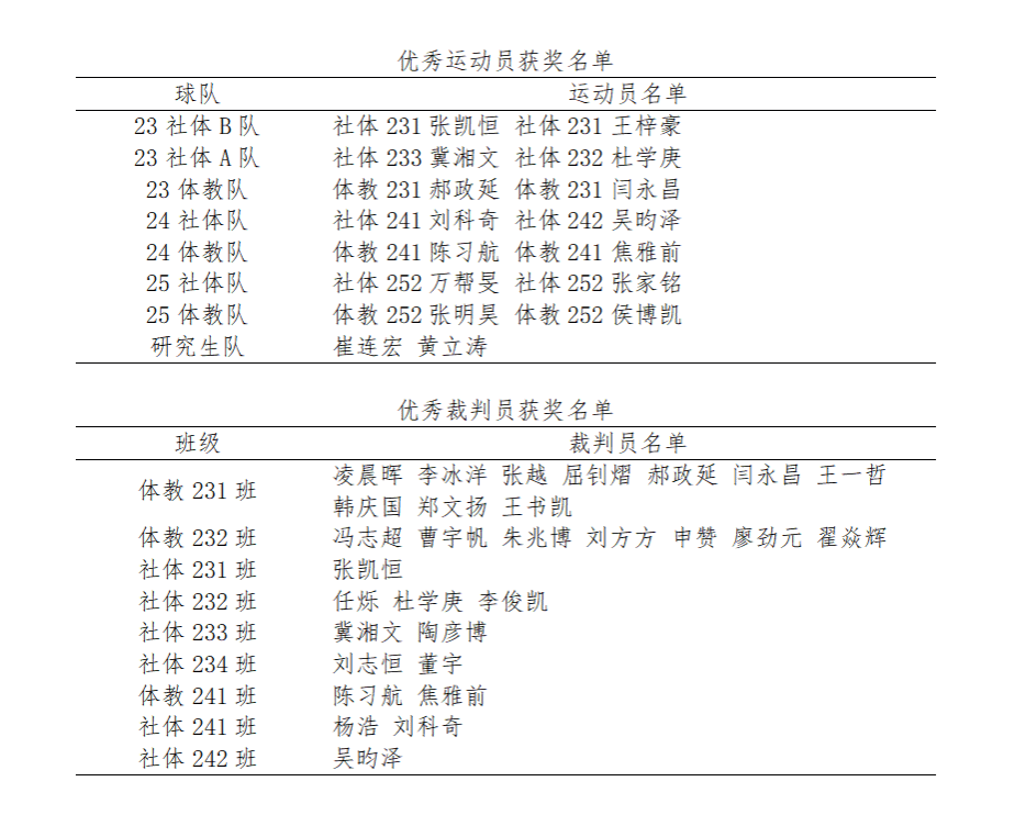 本届赛事共有来自不同年级和专业的8支球队参加,参与人员共120余人。赛场上,队员们默契配合、奋勇拼搏,精准的传球、迅猛的突破、果断的投篮、严密的防守,每一个精彩瞬间都点燃了现场观众的热情,欢呼声、呐喊声此起彼伏。场外,志愿者们认真负责,计分员、裁判员公正严谨,保障了赛事的顺利推进。经过28场激烈角逐,最终23社体A队凭借出色的战术执行和顽强的拼搏精神摘得桂冠,24社体队荣获亚军,23体教队斩获季军,23社体b队、24体教队、25社体队、25体教队和研究生队等五支球队获道德风尚奖,张凯恒等16名同学获优秀运动员奖,凌晨晖等30名同学获优秀裁判员奖。学院领导为获奖队伍和个人颁发奖杯、奖品,并与全体参赛队员合影留念。