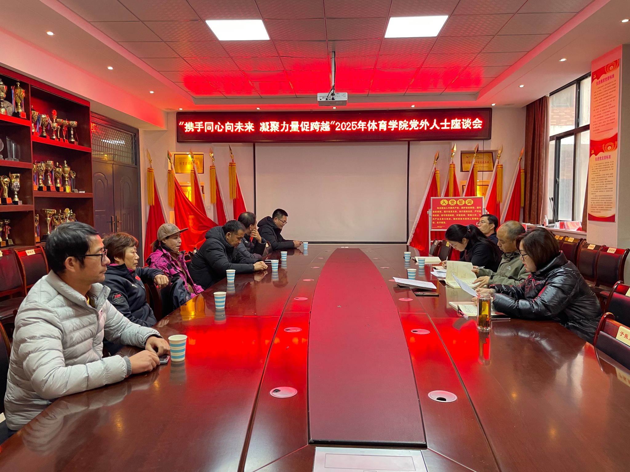 2025年12月16日,体育学院召开党外人士座谈会,围绕“携手同心向未来 凝聚力量促跨越”主题共商发展。学院党委副书记梁瑞主持会议,副院长、统战委员李娜致辞,学院党委书记徐现峰通报了学院在学科建设、教学改革、科研创新及社会服务等方面的最新进展,充分肯定了党外人士在各自岗位上做出的重要贡献。