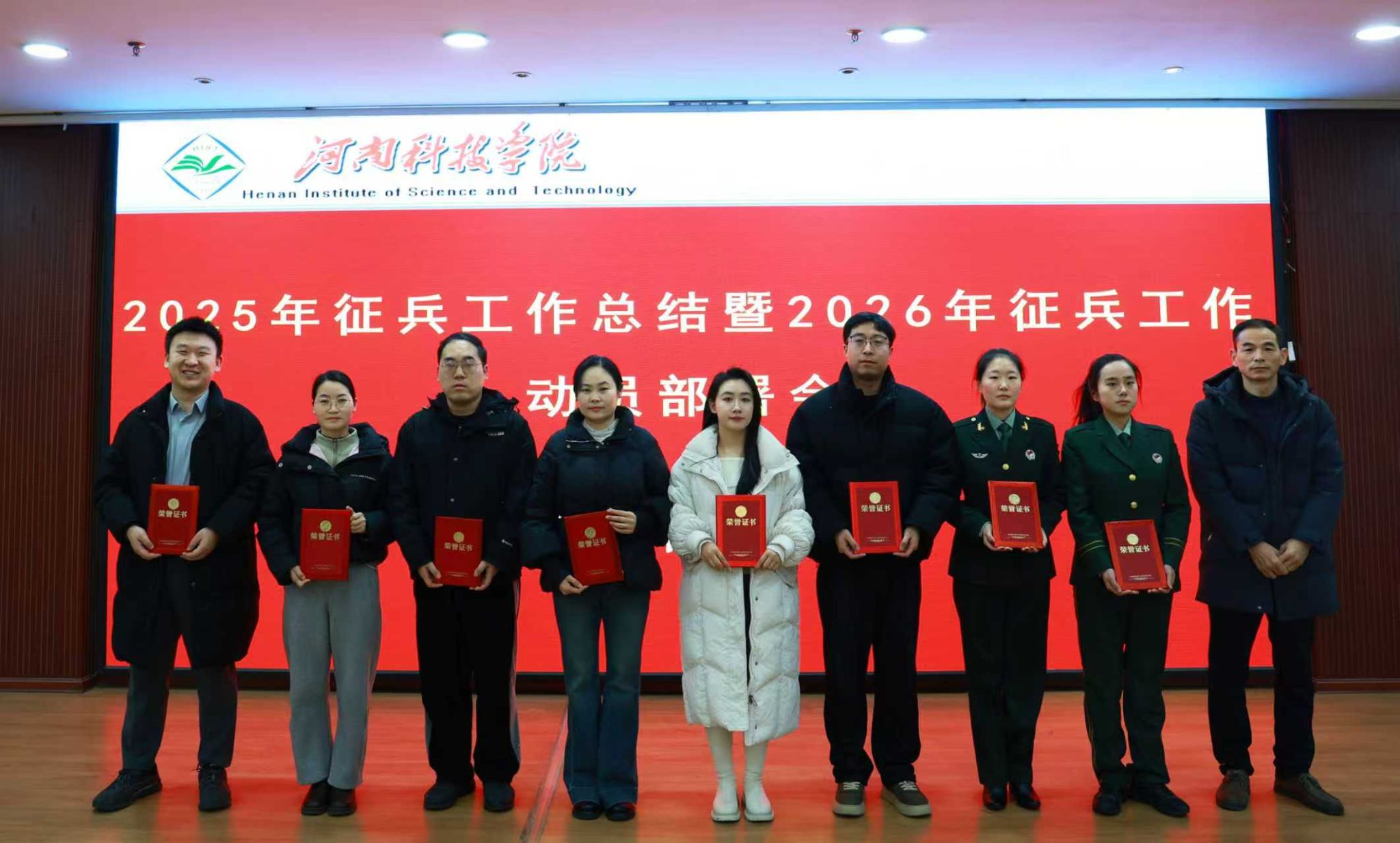 近日,我院征兵工作受到学校表彰,荣获校“2025年度征兵工作先进单位”称号,团委书记张向丽荣获校“2025年度征兵工作先进个人”称号。