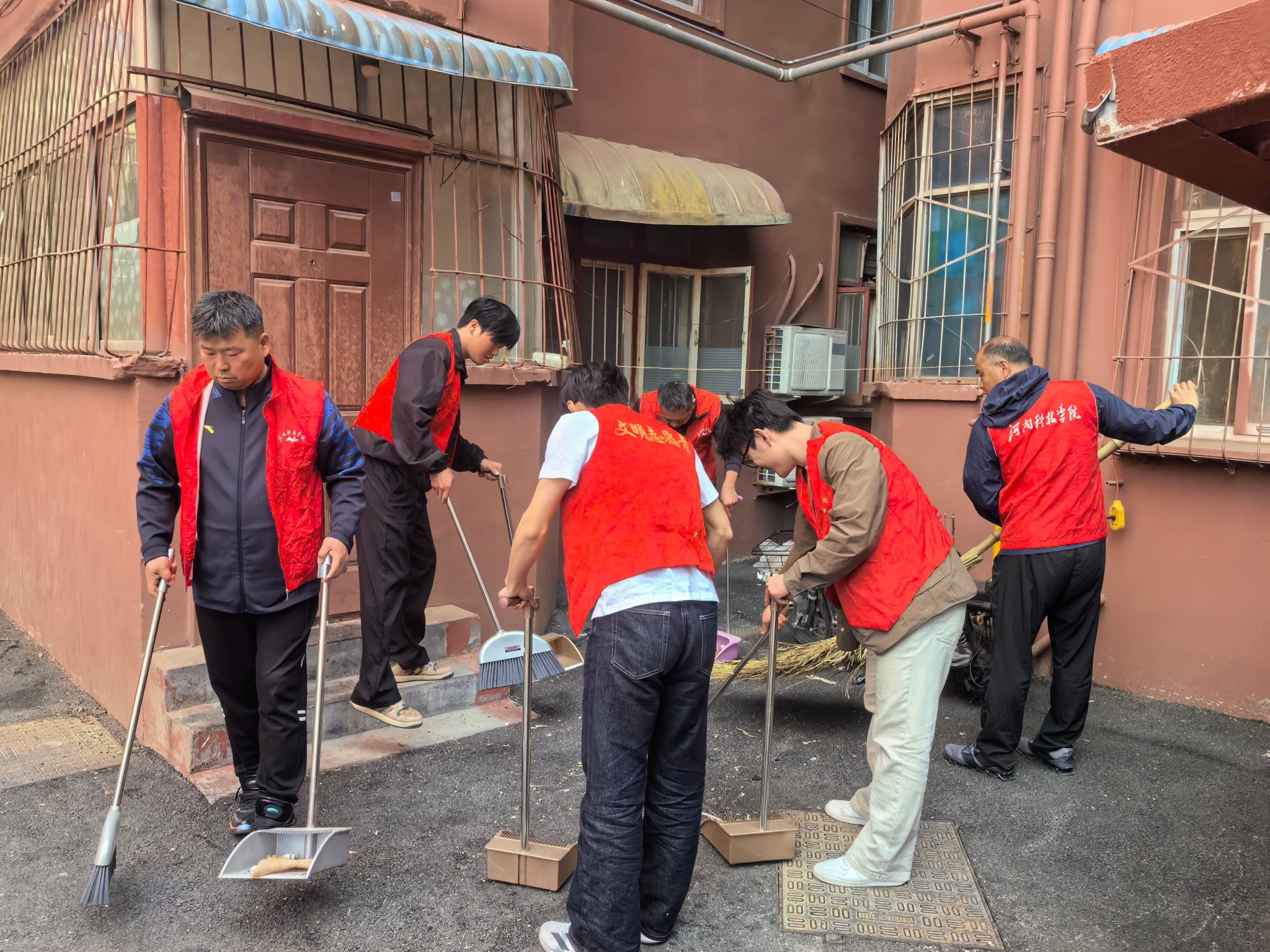 活动现场,党员志愿者们身着统一的红色马甲,分工明确、配合默契,重点对庭院内的积存垃圾、卫生死角、绿化带杂物进行彻底清理,同时对居民楼周边乱堆乱放的物品进行有序整理,耐心引导居民养成文明整洁的生活习惯。过程中,大家不怕脏、不怕累,弯腰捡拾烟头、纸屑,俯身清理墙角污渍,不放过任何一处卫生盲区,用汗水为社区环境“梳妆打扮”,用行动为居民营造干净、整洁、舒适的居住环境。