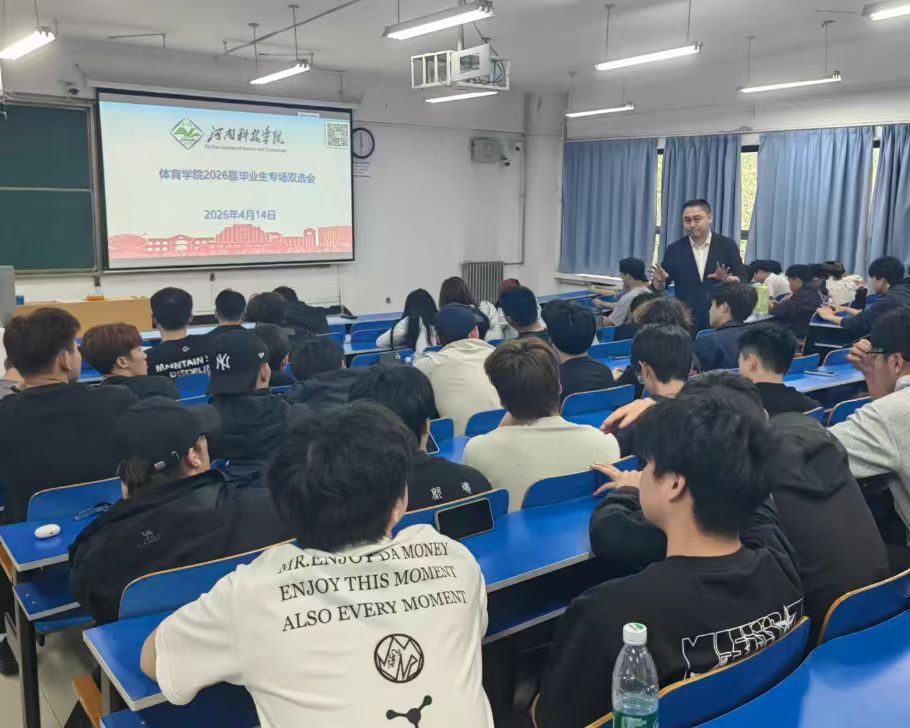 4月14日下午,体育学院在八合三教室成功举办“体育学院2026届毕业生专场双选会”。院长高泳、教学副院长于振勇、实践实训教研室主任任东根及相关教师出席会议,2022级体育教育专业与社会体育指导与管理专业全体学生参加。